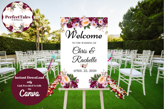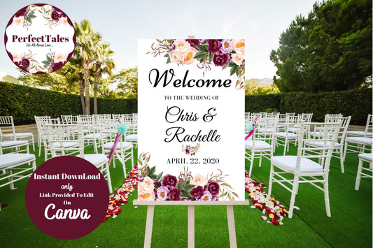 Wedding Welcome Signs 3 - Peonies Flowers